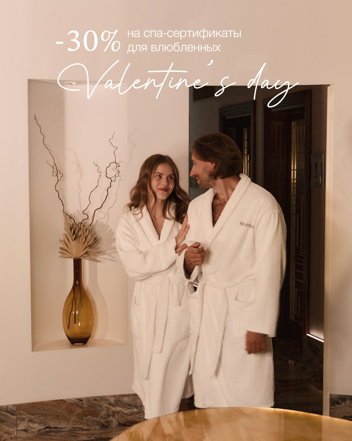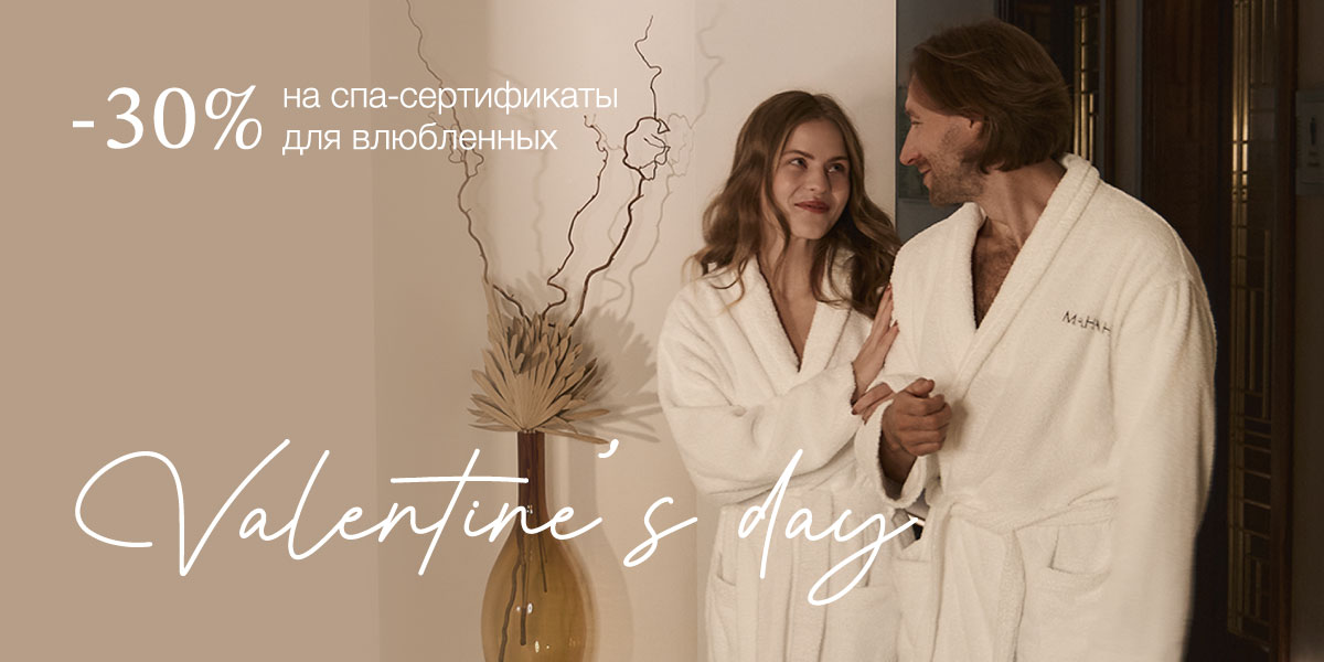 Скидки 30% на спа-пакеты для двоих! Комплекс процедур, который вы выберете, сформирован специально для гармонизации тела, духа и ума. Вдвоем вы приумножите эффект, ведь так ценно поделиться с тем самым человеком!